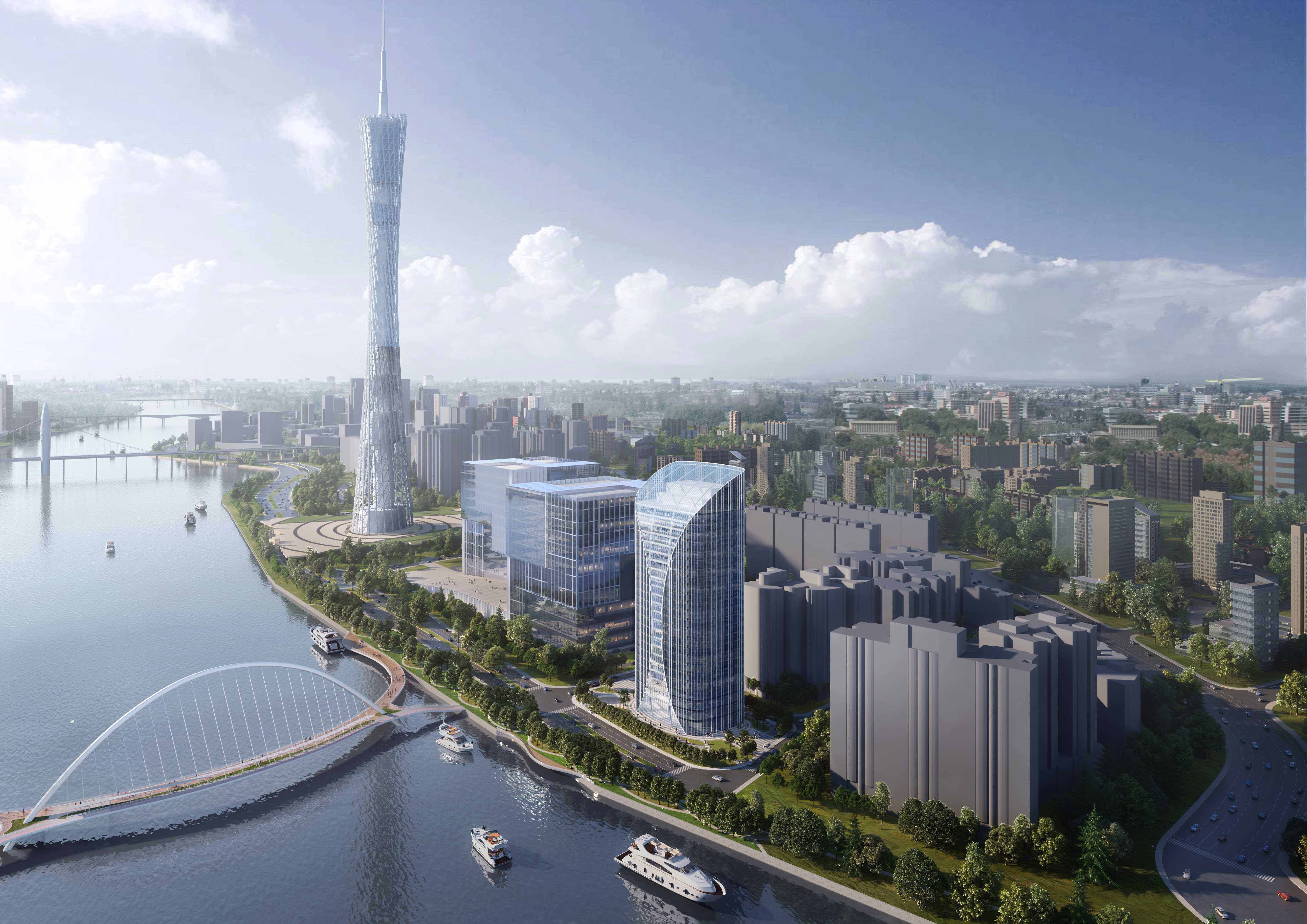 项目特点:项目为超甲级写字楼,位于广州市海珠区北部,地处珠江新城隔江相望的广州新中轴南段核心区,毗邻广州国际媒体港、广州塔、海心沙亚运场馆、海心桥等多个城市地标性建筑,建筑总面积约为7万平方米,建筑高度130米,4层地下室,建成后将成为广州中轴南端的重要标志性建筑之一